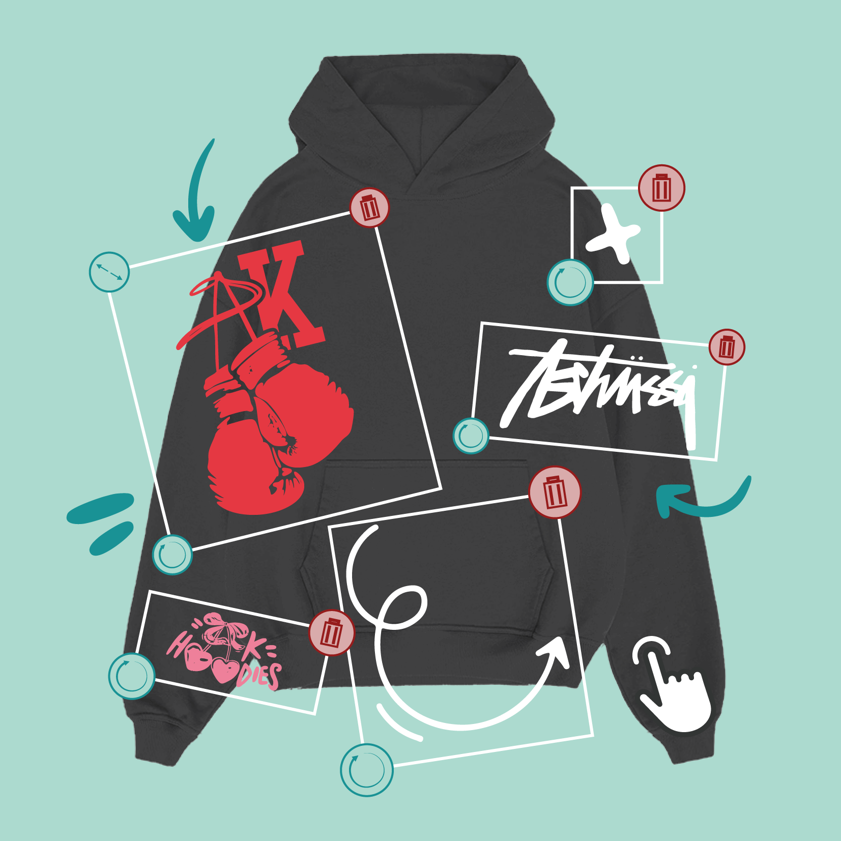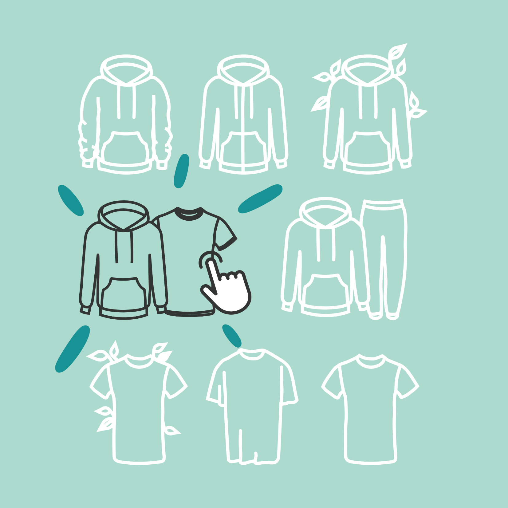 Wählt ein Produkt aus unserem Sortiment aus, oder stellt ein Set zusammen (z.B. Hoodie & T-Shirt), dann könnt ihr eure Textilfarben festlegen und ganz einfach eure Konfektionsgrößen eintragen.